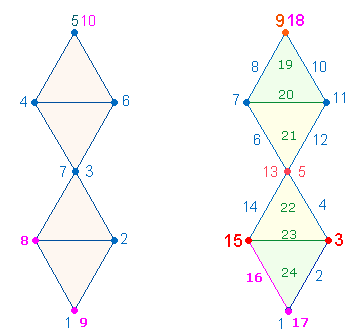 Doppeldreieck aus 13 Elementen. Durch Addition ergibt