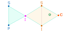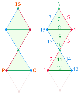 dann von dort die Mittelachse hinab und schließlich von C wieder hinauf zu IS. Um die Symmetrie des linken