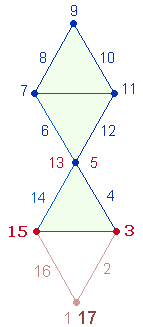 Dieses bildet mit dem zweiten Dreieck ein sanduhrförmiges Doppeldreieck, das