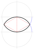 die Überschneidung zweier Kreise gebildet wird. Dabei liegt der Mittelpunkt des